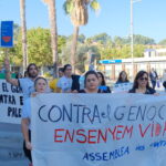 Els professors dels dos instituts han iniciat les marxes, amb pancartes i xiulets, des dels seus respectius centres escolars fins a confluir a la plaça Federico García Lorca. En el seu pas han tallat carrers i han clamat contra el genocidi a la Franja de Gaza. Els manifestants també s’han apropat davant de l’Ajuntament, on han llegit un manifest que ha subratllat dades esfreidores com que 660.000 alumnes no poden anar a l’escola, 800 docents han estat asasssinats o que el 97% dels centres escolars han estat bombardejats.