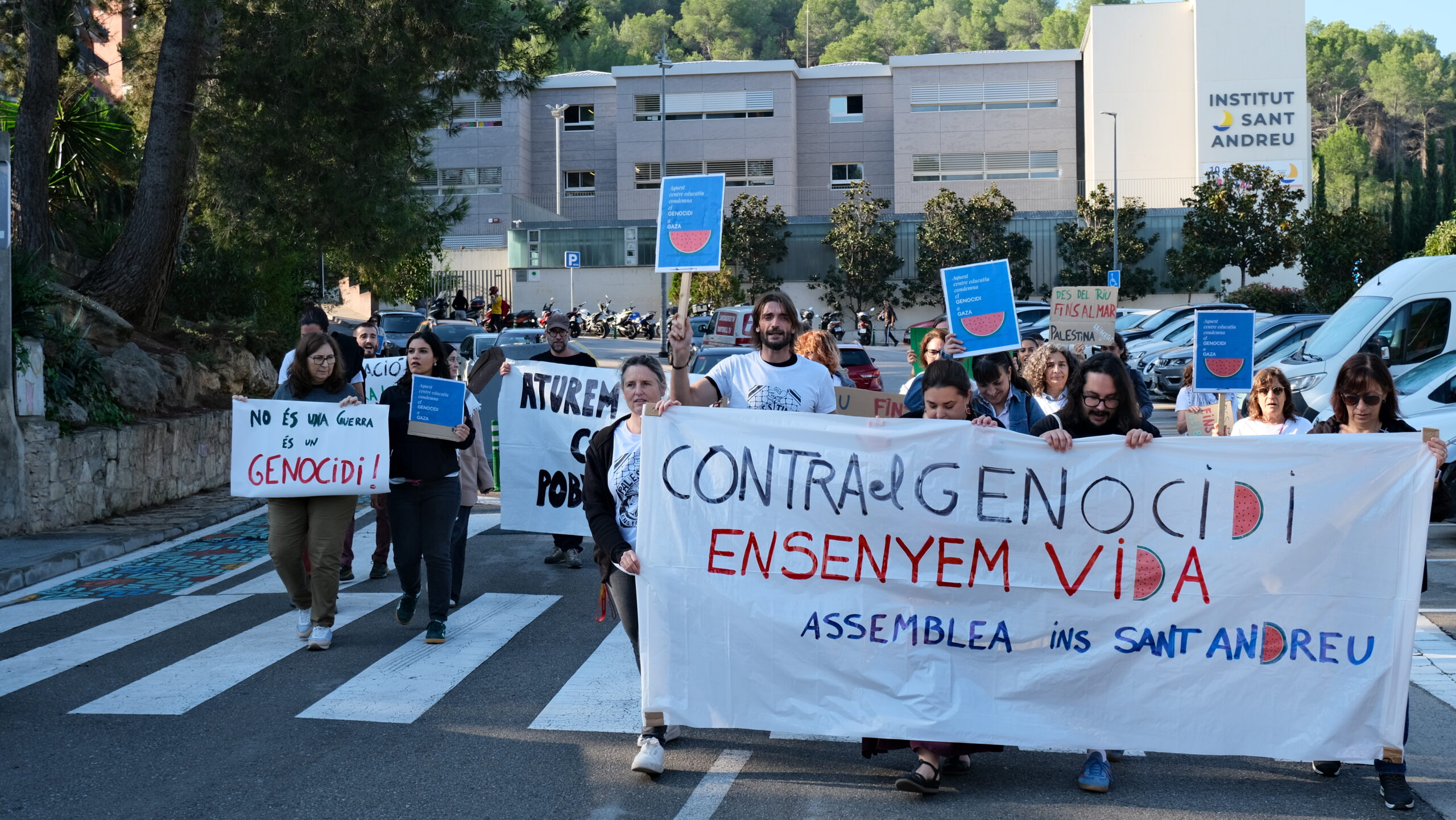Els docents de Sant Andreu de la Barca s’han sumat a la vaga convocada pr aquest dimecres 15 d’octubre en suport a Palestina. A prop d’una cinquantena de professors de l’institut Montserrat Roig i de l’institut Sant Andreu s’han mobilitzat recorrent els carrers del municipi.