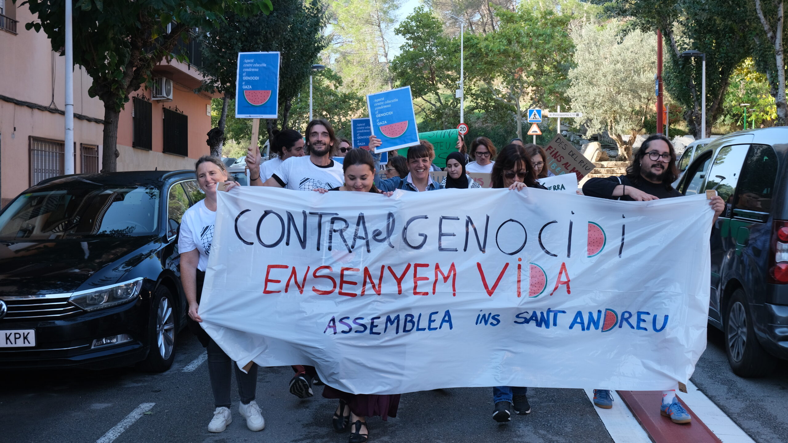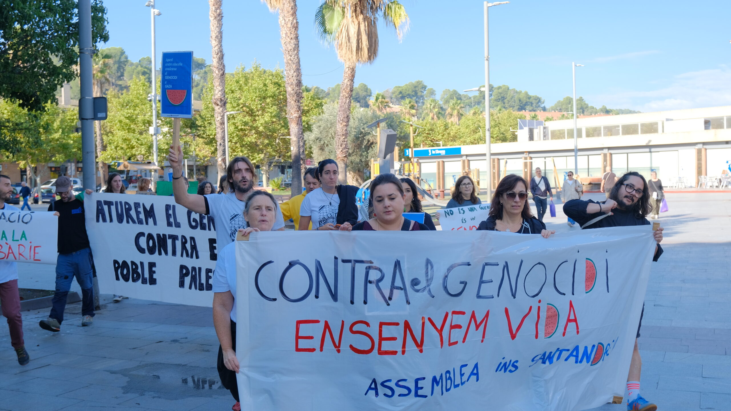 Els professors dels dos instituts han iniciat les marxes, amb pancartes i xiulets, des dels seus respectius centres escolars fins a confluir a la plaça Federico García Lorca. En el seu pas han tallat carrers i han clamat contra el genocidi a la Franja de Gaza. Els manifestants també s’han apropat davant de l’Ajuntament, on han llegit un manifest que ha subratllat dades esfreidores com que 660.000 alumnes no poden anar a l’escola, 800 docents han estat asasssinats o que el 97% dels centres escolars han estat bombardejats.