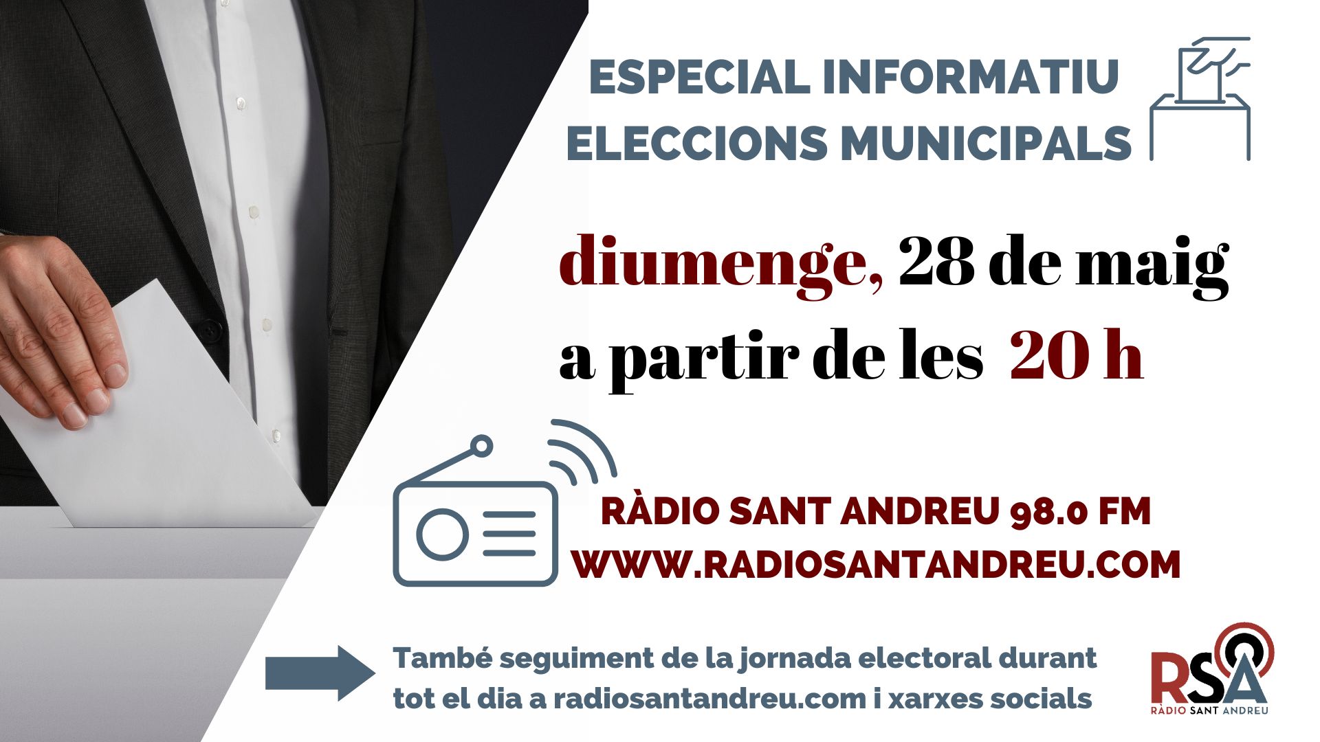 Aquest diumenge Ràdio Sant Andreu oferirà una programació especial amb dades de participació i el desenvolupament de la jornada electoral a través de la pàgina web i les xarxes socials.