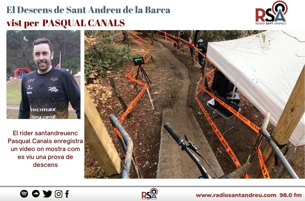 El rider santandreuenc, guanyador de la categoria Master 30 en el 28è Descens Internacional de Sant Andreu de la Barca, enregistra un vídeo per compartir amb el públic l’emoció de la prova esportiva.