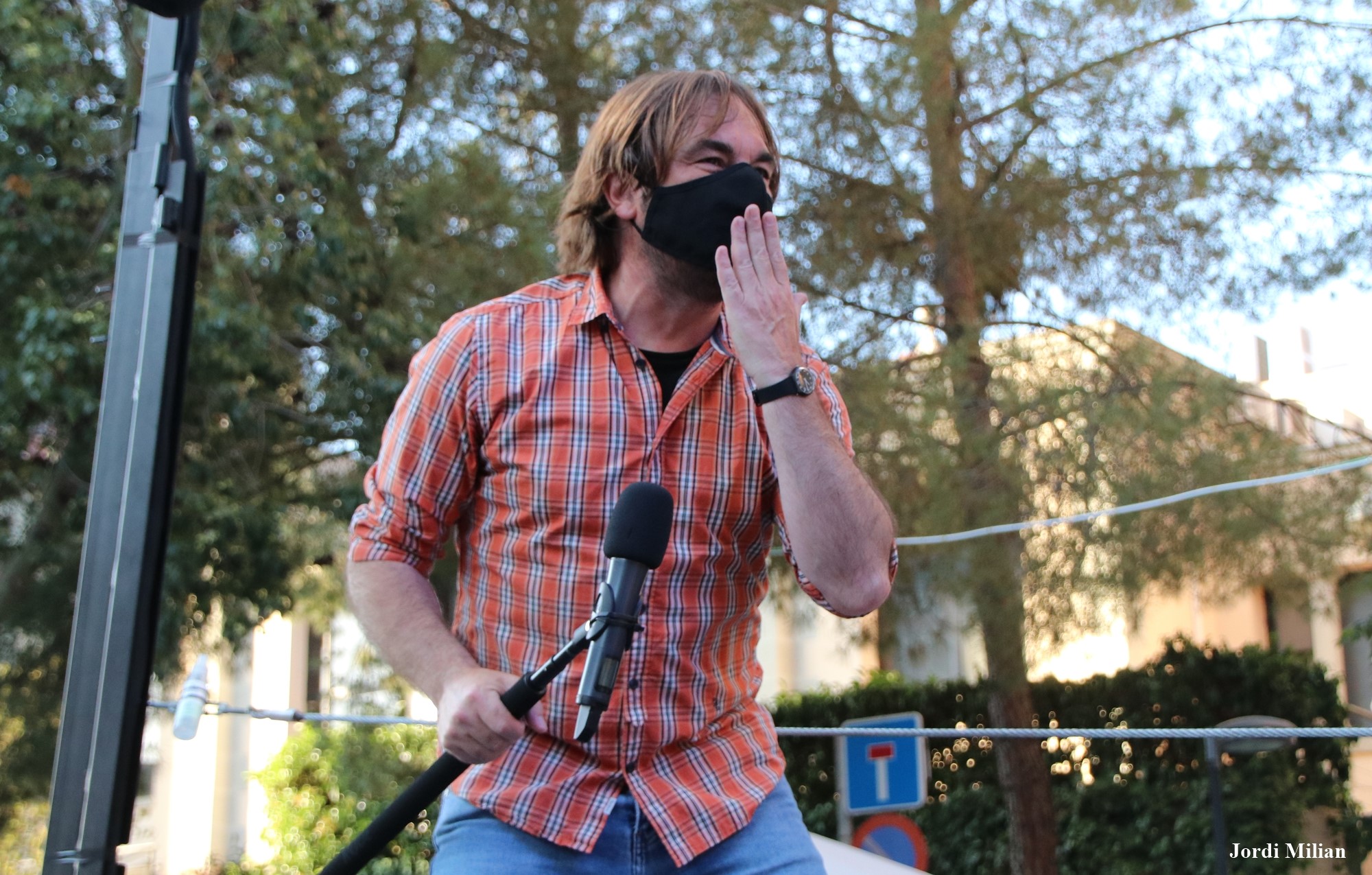 Masferrer pujat en un camió preparat per l’ocasió i adaptat per poder rentrasmetre l’espectacle en directe ha conversat amb membres d’entitats de Sant Andreu de la Barca, comerciants i la gent dde la ciutat