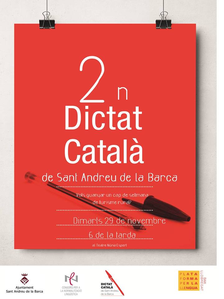 El dimarts 29 de novembre la Sala Federico Garcia Lorca del Teatre Núria Espert acollirà la segona edició del Dictat Català organitzat pel Servei Local de Català de Sant Andreu de la Barca.